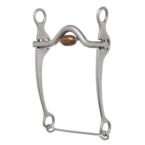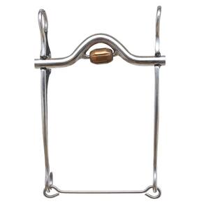 Um Freio na qualidade Boot Horse modelo Western Bit, fabricado em aço inox, bocal com portal médio com e rolete de cobre no centro auxiliando na salivação do cavalo, barbela fixa entre as pernas, assentos lisos e hastes articuladas.