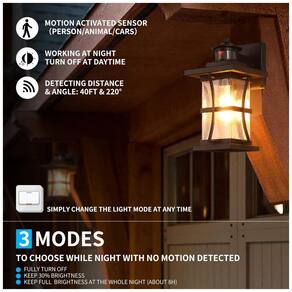 Nossa luz externa com sensor de movimento de alta sensibilidade pode fornecer iluminação inteligente com 3 modos. Modo A luz de parede externa pode ser totalmente desligada sem movimento ativado e voltar a 100 de brilho assim que o movimento for detectado à noite. Modo A luz da varanda mantém 30 de luz sem movimento ativado ao anoitecer, ativado com 100 de brilho e volta a 30 de brilho após 120s. Modo de substituição manual que pode manter 100 de brilho à noite por 8H. Área de iluminação e alcance de detecção mais amplos Liga automaticamente à noite e desliga durante o dia. A luz de parede com sensor de movimento atualizado pode ser acionada movendo pessoas, carros ou animais. A distância de detecção de até 12 metros e um ângulo de detecção de até 220 , que pode fornecer excelente iluminação para sua casa quente e iluminar o espaço escuro. Nossa luz externa é mais sensível do que as luzes gerais da casa ao ar livre, a distância de detecção é maior. Um bom parceiro para fornecer a base da segurança. Materiais de alta qualidade e vidro temperado semeado resistente Ao contrário de outras luminárias externas de baixa qualidade, nossa iluminação externa do crepúsculo ao amanhecer é feita de metal sólido 100 resistente e vidro temperado. Além disso, há muitas bolhas semeadas nela, que são os truques para que essa luminária emita a luz charmosa e suave. O vidro é 4 vezes mais duro que o vidro comum. Não é apenas à prova dágua e à prova de umidade, mas também faz com que a arandela externa pareça distinta quando pendurada na parede também. Adição incrível, ideal para aplicações amplas O design das luminárias externas de montagem na parede é um estilo estético único, moderno, elegante e clássico. A curvatura do corpo de luz pode adicionar um pouco de interesse aos padrões de linha da sua varanda sem que ela entre em conflito. Ele realmente reu a frente de portas de garagem, jardins, varandas, quintais, estrada. Confie em mim, cada um entende isso e acha que vale cada centavo Iluminando sua noite, além de adicionar belas decorações lá Marca: Não Informado