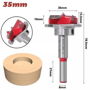 Fresa Broca Forstner 35mm para Dobradiça Caneco com Limitador de Profundidade Fresa com dente de vídea/metal haste 8mm diâmetro 35mm duro tipo Forstner indicada para trabalhos em madeira e derivados na colocação de dobradiças tipo caneco. - Marca: Dremax - Referência: BRF35 - Fresa dobradiça tipo caneco 35 mm com 3 dentes - Fresa com dente de vídea/metal duro indicada para trabalhos em madeira e derivados na colocação de dobradiças tipo caneco - Possui 3 dentes de vídea/metal duro, conferindo maior durabilidade - Diâmetro do corte: 35mm - Haste diâmetro x comprimento :8 mm x 20 mm / 12 mm x 25 mm - : 90 dias contra defeitos de fabricação Marca: Não Informado Ean: 7734625991933