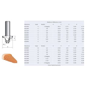 Dimensões: Largura do Corte: 3/4 polegada 19,04mm Haste: 6 mm Tipo de corte: Convexo com rolamento Embalagem: Blister com 1 unidade Fotos meramente Ilustrativas, Cor pode variar de acordo com o monitor e ou lote do produto