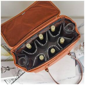Proteção total das garrafas Enchimento 6 aprimorado integrado, totalmente cercado e protegido de vinho tinto. Espaço extra em ambos os lados do saco pode zenar mais 2 garrafas de vinho tinto ou taças de vinho. Impermeabilização interna e externa A bolsa interna pode ser facilmente removida e limpa com um adesivo mágico. A remoção da bolsa interna também pode ser usada como uma bolsa de bagagem comum. Forro de plástico colocado no fundo da sacola para transportar até 9 garrafas de vinho tinto de 750ml. Tamanho 46 X 26 X 18 X 10 X 14 IN Design luxuoso e transporte confortável Couro PU SINTÉTICO premium feito à mão, fivela de ombro em metal retrô, capa de bolsa com fivela magnética. Nobre e elegante com a bolsa inteira. Escolha para atividades sociais de dar presentes Bolsa reutilizável e alças de ombro acolchoadas removíveis atendem às necessidades da maioria dos clientes de restaurantes e festas ao ar livre