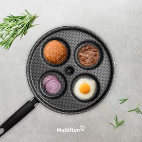 A clássica Gourmet de muitas praticidade e versatilidade. São diversos itens em vários tamanhos que se encaixam à muitas necessidades de preparo. Sua cor neutra é perfeita para misturar com outras peças e cores além de combinar com qualquer cozinha. As peças são revestidas com o exclusivo antiaderente Ultra 7 camadas da Multiflon, garantia de desempenho, resistência e durabilidade. A última camada do revestimento recebe uma textura que é única em produtos Multiflon.