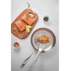 A capacidade volumétrica máxima para cozimento é de 3/4 da capacidade total da peça. Praticidade é a palavra-chave da frigideira Grano. Além de ser produzida com corpo triplo, que garante um cozimento mais rápido dos alimentos, seu desenho sem cantos torna sua limpeza muito mais fácil. Produzida com corpo triplo (aço inox + alumínio + aço inox). A frigideira tem design moderno e acabamento em alto brilho que permite ser levada à mesa. Pode ir ao forno para gratinar ou finalizar pratos, na temperatura máxima de 260°C. Pode ser lavada diariamente na máquina de lavar louças. Pode ser utilizada nos fogões: gás, elétrico, vitrocerâmico e indução.