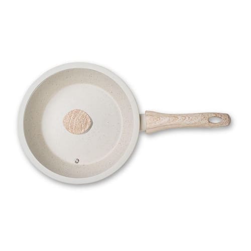 Característica-7 - RESUMO- Frigideira Alta com Tampa e Indução;- Linha Ceramic Life Sirius/Brinox;- Antiaderente Mineral Resist;- Tampa Flat em vidro temperado com borda de silicone e saída de vapor;- Cor Vanilla;- Dimensões: 24 cm de diâmetro por 6,7 cm de altura;- Capacidade: 2,3 L;- Cabo e pomel fabricados em baquelite com acabamento soft-touch e efeito amadeirado;- PFOA Livre.