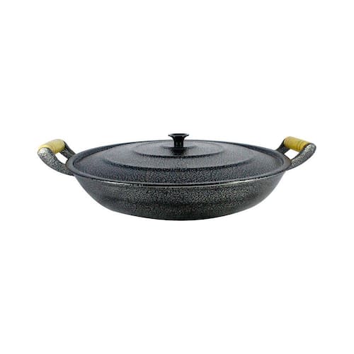 Frigideira Alumínio Fundido Craqueada Alça Madeira Trad Preta 36cm