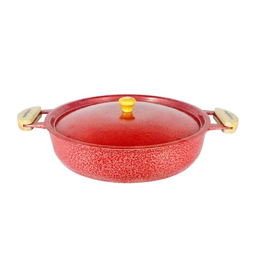 Frigideira Alumínio Fundido Craqueada Alça Meia Lua Vermelha 30cm