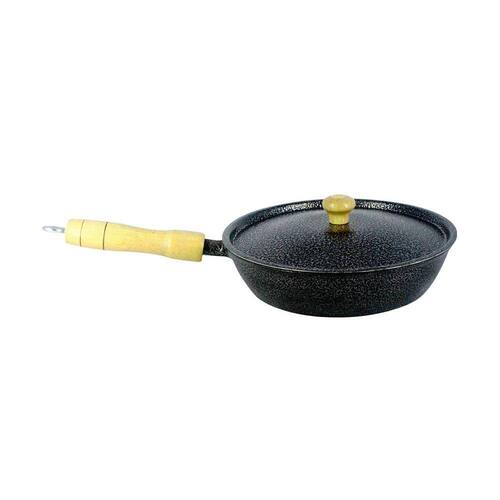 01 Frigideira Alumínio Fundido Craqueada Cabo de Madeira Preta 26cm
