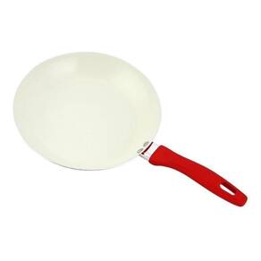 Frigideira em alumínio com revestimento cerâmico. Cabo em baquelite. Revestimento cerâmico interno antiaderente, fácil de limpar e resistente a calor e corrosão. Mais saudável, pois utiliza menos óleo para o preparo dos alimentos. Processo de revestimento cerâmico feito a base de água e não tóxico. Livre de pfoa, ptfe, bpa, e cádmio. Certificação inmetro 009344/2019. Certificação de aderência ocan categoria a (menos aderente). Indicada para todos os tipos de fogões, exceto cooktops por indução magnética Dimensões: diâmetro 20 cm. Comprimento 36 cm. Espessura 2 mm