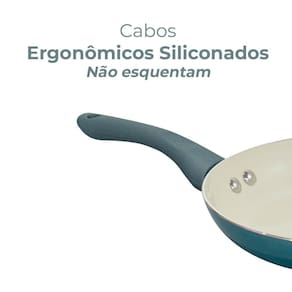 A frigideira não gruda e é extremamente fácil de limpar, além disso, o cabo é revestido com silicone que não esquenta, é mais confortável ao manusear e traz muito mais segurança durante o preparo de suas refeições.