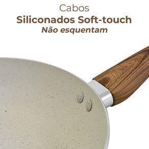 Possui cabo com acabamento siliconado Soft-Touch amadeirado, que dá um toque macio e não esquenta, trazendo um design inovador, ideal para você que gosta de sofisticação e elegância em sua cozinha.
