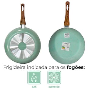Recomendações: - Lavar antes do primeiro uso, untar com óleo e aquecer antes da primeira utilização. - Usar somente utensílios de madeira, silicone ou nylon. - Utilizar fogo médio ou baixo, pois a frigideira distribui uniformemente o calor. - Não esquentar o produto vazio. - Utilizar o lado macio da esponja e evitar uso de abrasivos - Indicado para fogão a gás e elétrico.
