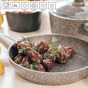 Frigideiras com Revestimento em Granito Antiaderente Desfrute da Cozinha Livre de Óleo e Sem Preocupações com a Limpeza Graças ao nosso revestimento antiaderente, você nunca mais precisará lidar com o aborrecimento de alimentos grudados ou excessivamente gordurosos. A limpeza se torna uma tarefa fácil e rápida, transformando a manutenção das panelas em algo simples. Basta água e sabão, e tudo estará impecável em questão de segundos. Perfeito para o uso diário, uma vez que não retém odores, sabores e não libera substâncias tóxicas em sua comida. Fabricado para resistir a altas temperaturas, este utensílio, quando bem cuidado, pode ser um companheiro vitalício na sua cozinha. Não perca mais tempo tentando limpar panelas antigas e sujas. Adquira já a nossa Frigideira com Revestimento em Granito Antiaderente e desfrute de cozinhar sem complicações Descrição do Produto: Dimensões: 20x5cm Quantidade: Uma Unidade Revestimento: Granito Antiaderente Marca: Homi Hon