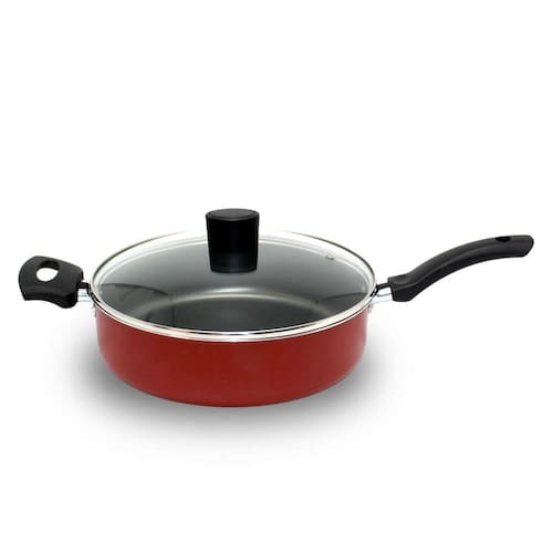 Frigideira Antiaderente Tampa De Vidro 24 Cm Vermelha