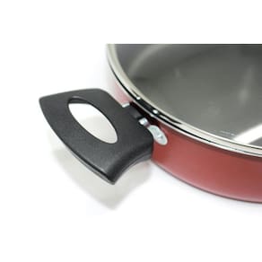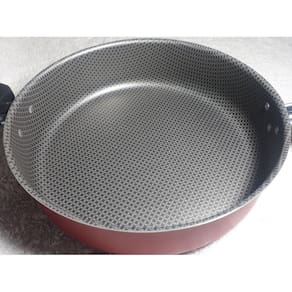 A frigideira da Alegrete é muito bonita, fabrica em alumínio e revestida com o novo sistema de Antiaderente Rotoprint de 5 camadas ultra resistente, não gruda alimentos e é fácil de lavas. O diferencial desta frigideira á que ela possui cabo e alça em baquelite, material que não esquenta, proporcionando maior segurança na hora de preparar suas receitas. Ainda acompanha tampa de vidro temperado com saída de vapor e bordas em aço inox