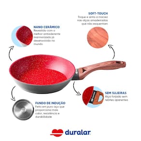 Frigideira Com Tampa Cerâmica Antiaderente Indução N24 Red Marble Duralar