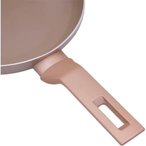 DESIGN: A frigideira é produzida em alumínio com 2 camadas de revestimento cerâmico, 1 camada resistente a alta temperatura e sua base em alto-relevo impede o contato do alumínio em fogão vitrocerâmico, assim evitando danificar o produto. O cabo é revestido com tecnologia soft-touch confortável de segurar e não queima as mãos. O material é livre de PFOA e conduz o calor de forma uniforme e sem variações de temperatura, também é capaz de manter o calor por mais tempo mesmo fora do fogo.
