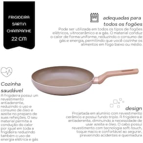 Frigideira Cerâmica 22cm e 1,2L Sartin Champanhe