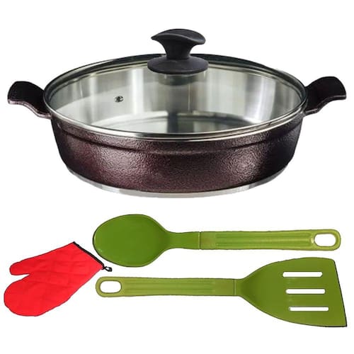01 Frigideira Cereja Alumínio Fundido Usinado Talher e Luva 04 30cm.