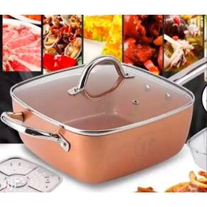 Frigideira com espumadeira para fritar peixe batata frita A panela multiuso é a solução ideal para quem busca praticidade e eficiência na cozinha. Com um design inovador, esta panela é perfeita para preparar legumes, fritar batatas e muito mais, garantindo resultados saborosos e saudáveis. Seu revestimento antiaderente facilita a limpeza e evita que os alimentos grudem, tornando o processo de cozimento ainda mais agradável. Com capacidade para atender diversas receitas, a panela multiuso é versátil e se adapta a diferentes modos de preparo. Seja para refogar, fritar ou cozinhar, você encontrará nela uma aliada indispensável. A distribuição uniforme do calor assegura que seus pratos sejam cozidos de maneira homogênea, preservando o sabor e os nutrientes dos alimentos. Ideal para famílias e amantes da culinária, esta panela é uma adição valiosa à sua cozinha. Seu material durável e resistente garante que você possa desfrutar de suas funcionalidades por muito tempo. Experimente a panela multiuso copperpan e transforme sua experiência culinária em algo ainda mais especial. Especificaçõs do produto - dimensões: 26x26x9cm - peso: 1,30kg - espessura: 2.0mm - a tecnologia de revestimento é resistente a riscos, arranhões e altas temperaturas - completamente livre de compostos tóxicos como pfos, pfoa e ptfe Conteúdo da embalagem: - 1 panela quadrada - 1 tampa de vidro - 1 cesto de fritura - 1 À Vapor em metal inox Marca: Não Informado Ean: 79017883732065