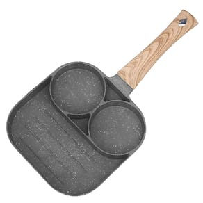 - Linha: Frigideira antiaderente com três divisórias circulares.