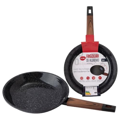 Fabricada com materiais de alta qualidade, esta frigideira é projetada para proporcionar resultados excepcionais em qualquer cozinha. Seu revestimento antiaderente garante que seus alimentos deslizem suavemente, sem grudar, enquanto o alumínio distribui o calor de maneira uniforme para um cozimento perfeito. Com um cabo ergonômico em baquelite, oferece conforto e segurança durante o uso. Além disso, sua versatilidade é incomparável pode ser utilizada em fogões a gás e fogões por indução, proporcionando praticidade em todas as suas receitas favoritas