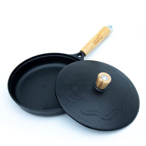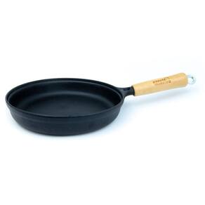 Frigideira de Ferro Fundido com 25 cm diâmetro e bordas de 4,5 cm de altura. ACOMPANHA TAMPA DE FERRO COM PUXADOR DE MADEIRA. Possui cabo de madeira que é rosqueável e facilmente retirado e colocado, assim retirando o cabo pode-se levar a frigideira ao forno servindo como uma assadeira. Todas as frigideiras de ferro da marca Panela Mineira podem ser utilizadas em todos os tipos de fogão a gás, a lenha, elétrico e também em cooktop de indução. Prepare carnes suculentas, peixes, ovos, omeletes, panquecas e todos os tipos de alimentos.