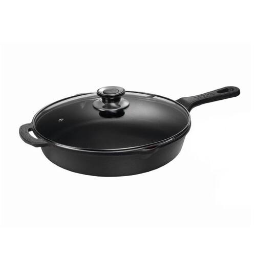 A Frigideira do Chef Cabo de Ferro com Tampa de Vidro da Panela Mineira oferece um design moderno e autêntico, com fundo reto e lados baixos e inclinados para facilitar o manuseio e escoamento de líquidos. Sua excepcional distribuição e retenção de calor, típicas do ferro fundido, a tornam perfeita para tostar, refogar, fritar, selar carnes e grelhar. Um produto completo, prático e resistente, indicado para diversos tipos de preparos. É inteiramente produzida em ferro fundido. Dessa forma, recomendamos que o produto seja sempre manuseado com o auxílio de luvas térmicas ou panos.