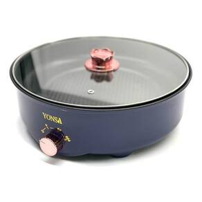Panela elétrica multiuso com 3 níveis de temperatura, potência de 600W, revestimento antiaderente, tampa de vidro com saída de vapor e bordas em inox. Possui pegada anti-queimaduras e proteção contra queima a seco.Lâmpada piloto