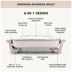 Graças ao revestimento cerâmico antiaderente sem PFAS da GreenPan, cada refeição se torna mais saudável e a limpeza é fácil. Com sua superfície de cozimento e capacidade de 6,6 Litros, você pode preparar grandes refeições como frituras, refogados, cozidos, ensopados, dourados e stir fry para toda a família. Escolha facilmente o calor desejado com o botão de temperatura, depois conserve todo o calor, umidade e sabor com a durável tampa de vidro. Esta frigideira é ultra resistente e resistente a riscos, perfeita para o uso diário. Basta limpar com um pano quando terminar ou colocar na lava-louças sem a sonda.