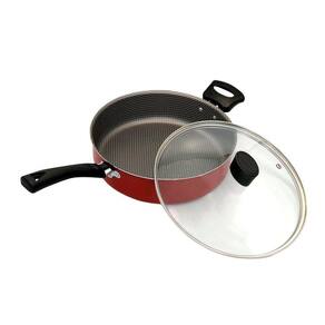 Frigideira Enjoy Reta 24cm Com Tampa de Vidro e Alça - Vermelha