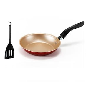 Frigideira francesa 18 cm antiaderente teflon com espátula cor cereja Frigideira francesa antiaderente de 18 cm com cabo de baquelite é um utensílio de cozinha de alta qualidade feito para cozinhar alimentos de forma eficiente e saudável sem precisar usar óleo.