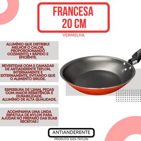Frigideira Francesa Antiaderente Teflon 20 Cm Cor Vermelho Frigideira Francesa Na Cor Vermelho oferece alto desempenho, sustentabilidade é excelente padrão de qualidade. Corpo de alumínio com acabamento interno e externo com Antiaderente de alta performance com 5 camadas. O alimento não gruda Marca: Heraa
