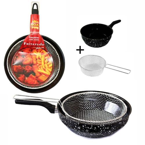 Conteúdo da Embalagem: 01 Frigideira Fritatudo com Cesto 26cm Esmaltado