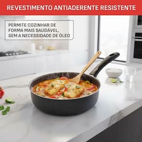Revestimento Antiaderente Resistente: permite cozinhar de forma mais saudável, sem a necessidade de óleo.