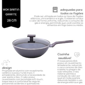 Frigideira Wok Alumínio Cerâmica 28cm e Sartin Grafite