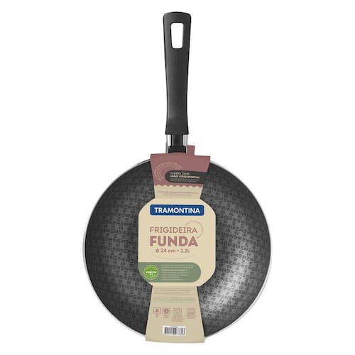 Você vai se impressionar com a Frigideira Funda Tramontina Loreto em Alumínio com Revestimento Interno Antiaderente Starflon T1 Grafite 24 cm de diâmetro 2,2 L. Produzida em alumínio com revestimento interno de antiaderente Starflon T1, ela possui maior poder de antiaderência, maior resistência à abrasão e maior durabilidade. Além disso, seu cabo em baquelite antitérmico, proporciona um manuseio muito mais confortável e seguro, pois não aquece. Prática e funcional pode ser utilizada em fogões à gás, elétricos e vitrocerâmicos. Com design supermoderno a frigideira funda Tramontina possui decoração interna exclusiva. Com ela, o preparo das suas melhores receitas está garantido!