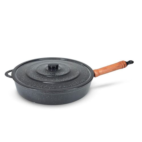 • 01 Frigideira Fundida Alumínio Batido Grosso Com Tampa 30cm