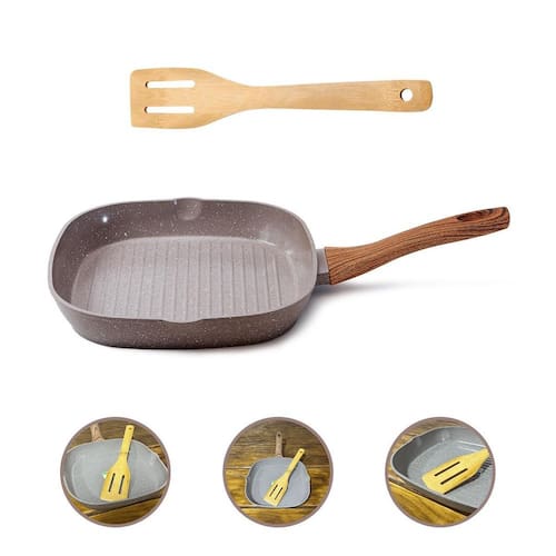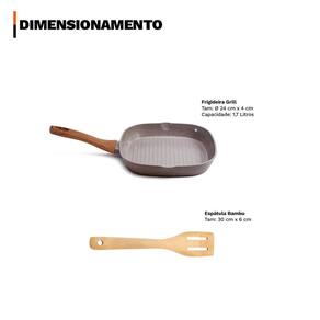 Frigideira Grill 24Cm Cerâmica E Espátula Bambu 30Cm-Grafito
