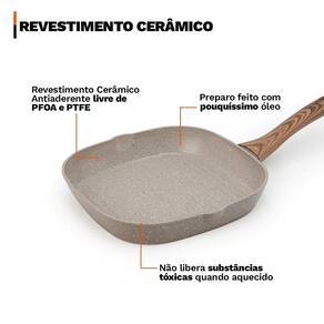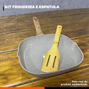 Distribuído por feheros shop Kit frigideira grill quadrada 24cm cerâmica antiaderente e espátula bambu 30cm Atenção Este kit é a escolha ideal para quem busca preparar grelhados, carnes e legumes com praticidade, segurança e eficiência. Composto por uma frigideira grill quadrada de 24cm e uma espátula vazada bambu de 30cm, o conjunto proporciona uma experiência culinária completa, preservando o sabor e a integridade dos alimentos. O revestimento cerâmico da frigideira oferece uma superfície antiaderente mais saudável, livre de pfoa e ptfe, que facilita o preparo sem deixar os alimentos grudarem. A espátula em bambu é perfeita para mexer, servir e manipular os alimentos sem arranhar ou danificar o revestimento da frigideira. Compatível com todos os tipos de fogão, incluindo indução, este kit alia eficiência térmica, conforto no manuseio e durabilidade, tornando-se indispensável para o dia a dia na cozinha. Informações do produto A frigideira grill possui design quadrado com sulcos internos que simulam o efeito da grelha, garantindo selagem perfeita e deixando os alimentos mais saborosos e visualmente atrativos. Seu cabo em baquelite com revestimento soft touch oferece segurança e conforto, pois não aquece durante o uso. A espátula vazada de bambu é perfeita para mexer, servir e preparar alimentos de forma prática e segura. Seu design vazado facilita o escorrimento de líquidos e óleos, tornando-a ideal para frituras e refogados. Produzida em bambu de alta qualidade, é biodegradável, ecológica e resistente ao calor. Especificações técnicas do produto - segurança: frigideira com revestimento cerâmico livre de pfoa e ptfe e espátula de bambu que não risca o antiaderente - alta resistência: materiais de alta qualidade que suportam altas temperaturas sem deformar - cozimento eficiente: design quadrado com sulcos que selam e grelham os alimentos com uniformidade - conforto: cabos ergonômicos e resistentes ao calor, oferecendo firmeza no manuseio - fácil limpeza: frigideira de limpeza simples com esponja macia. A espátula deve ser lavada manualmente com água e sabão neutro Ficha técnica do produto Frigideira grill quadrada - largura: 24cm x 24cm - altura: 4cm - capacidade: 1,7 litros - peso: 600g - material: alumínio com revestimento cerâmico Espátula vazada bambu - comprimento: 30cm - largura: 6cm - material: bambu natural Antes do primeiro uso - lave a frigideira e a espátula com esponja macia e detergente neutro para remover resíduos de fabricação - seque completamente com pano seco - na frigideira, aplique uma fina camada de óleo vegetal no interior, aqueça por 2 minutos em fogo baixo, deixe esfriar, lave novamente e seque antes de usar - caso deseje, pode untar a espátula com uma pequena quantidade de óleo para garantir uma maior durabilidade Após o uso - deixe os itens esfriarem naturalmente antes de lavar para evitar choques térmicos - lave com esponja macia e detergente neutro - não utilize utensílios metálicos ou produtos abrasivos para não danificar o revestimento - a espátula deve ser lavada à mão com água morna e detergente neutro - seque a espátula imediatamente após a lavagem para evitar rachaduras ou mofo - evite deixar a espátula submersa em água por longos períodos Itens inclusos no pacote - 01 frigideira grill quadrada 24cm revestimento cerâmico antiaderente indução - 01 espátula vazada bambu 30cm orgânica natural Todas as fotos são reais dos produtos. Qualquer dúvida estamos à disposição. Dúvidas frequentes 01 - o produto é novo Possui 03 - como posso acompanhar o envio Você poderá acompanhar o envio do seu pedido por meio do código de rastreamento fornecido após a confirmação do envio.