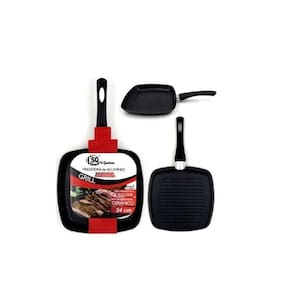 Frigideira Grill Alumínio Anti Aderente 24Cm Cabo Silicone