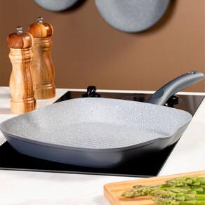 A Frigideira Grill Hércules com Revestimento Cerâmico e Indução 31 cm Cinza foi projetada para trazer praticidade, elegância e qualidade ao seu dia a dia. Fabricada em alumínio com revestimento cerâmico antiaderente, ela proporciona cozimento uniforme e eficiente, sem agredir a saúde ou a natureza. Ideal para grelhados suculentos e perfeitos, conta com cabos soft touch que não esquentam e podem ir ao forno. Seu design exclusivo garante durabilidade e alta resistência, sendo compatível com fogões convencionais e de indução.