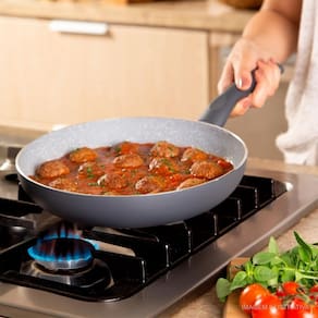 A Frigideira Hércules com Revestimento Cerâmico 20 cm em Alumínio Cinza possui corpo em alumínio com 3 milímetros de espessura, é leve para utilizar e guardar, possui revestimento antiaderente cerâmico capaz de conduzir o calor de maneira uniforme para acelerar o cozimento e sem componentes PTFE e PFOA, que são prejudiciais à saúde e agridem a natureza. Também possui cabos em baquelite com acabamento soft touch que não esquentam enquanto cozinha no fogão, além de poder ir ao forno!