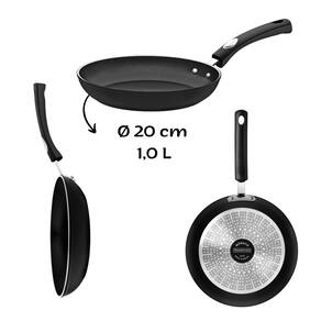 Apresentamos a Frigideira Tramontina Mônaco Induction com Starflon Premium Preto 20 centímetros de diâmetro 1 litro e espessura especial de 3 milímetros que proporciona o cozimento de maneira uniforme e rápida. Produzida em alumínio com revestimento interno e externo de antiaderente Starflon Premium, os alimentos não grudam em sua superfície, é mais durável e não é prejudicial à sua saúde, pois é livre de PFOA. Seu cabo metálico com proteção de silicone reduz a propagação de calor, aumentando a segurança e melhorando seu manuseio. Pode ir à máquina de lavar louças facilitando seu dia a dia.