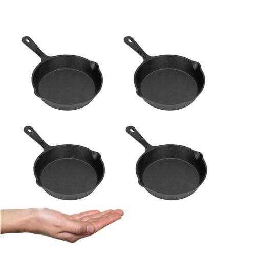 Contem: 4 Mini Frigideiras Diametro: 10 cm Comprimento: 16 cm Material: Ferro Fundido Compativeis com todos os tipos de forno e fogao, inclusive de induçao