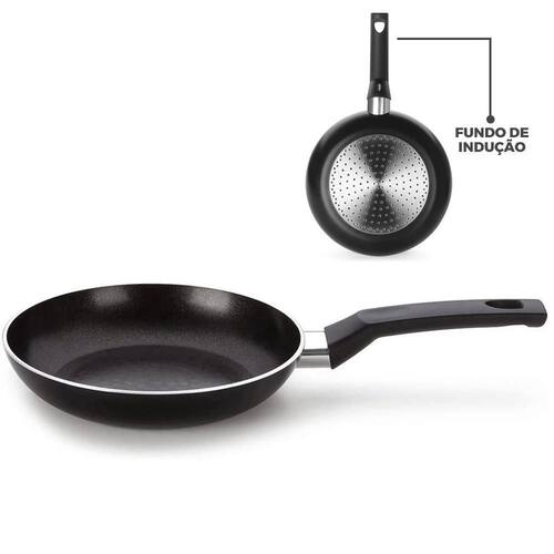 Frigideira Induct+ Multiflon 26cm Antiaderente Preto - 44026Com design exclusivo e tecnologia própria orgulhosamente brasileira, a linha induct+ conta com o fundo especial em inox que permite o uso em qualquer tipo de fogão, sendo ideal para os fogões de indução.IMAGENS MERAMENTE ILUSTRATIVASEspecificações Técnicas:Modelo: 44026Material: alumínioMaterial do cabo: baqueliteCor: pretoDiâmetro: 26cmEspessura: 4mmCapacidade: 2,4 litrosDescrição do Produto:Todas as peças contam com maior espessura e o antiaderente Quartzo com 7 camadas, exclusivo dos produtos Multiflon.O revestimento Quartzo traz como diferencial a sua extrema resistência e durabilidade, formulado por partículas de cerâmica extra dura.Os antiaderentes Multiflon carrega o selo PFOA FREE, que garante a ausência de elementos nocivos à saúde em sua composição.Recomendações de uso e cuidado:Antes do primeiro uso, lave bem e unte o interior com óleo de cozinha, aqueça em fogo baixo por dois minutos, deixe esfriar e lavar novamente.Nunca use utensílios de metal ou objetos pontiagudos.Cozinhe em fogo baixo ou médio.Não superaqueça a panela ou deixe que as chamas se estendam para as laterais da panela superaquecendo os cabos.Evite mudanças bruscas de temperatura.Sempre deixe a panela esfriar antes de lavar.Limpeza o revestimento antiaderente garante fácil limpeza com apenas água morna e detergente neutro.Não use produtos de limpeza abrasivos.Dimensões do Produto:Altura: 7cmLargura: 27cmComprimento: 43cmGarantia: 12 meses pelo fabricante. Ean: 7896398340179