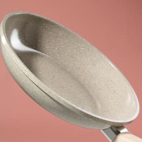 A frigideira possui revestimento interno e externo de cerâmica de alta qualidade com 5mm de espessura, o que protege os alimentos de metais pesados e elementos químicos, tornando as refeições mais saudáveis. Além disso, a cerâmica evita que os alimentos grudem na superfície, dispensando o uso de grandes quantidades de óleos e gorduras. A limpeza também é muito simples e rápida.