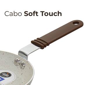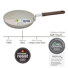 A Frigideira é produzida em alumínio e com revestimento cerâmico, ambos na cor vanilla, não gruda, é mais fácil de limpar e mais saudável, pois necessita de menos óleo para o cozimento e é livre de metais pesados.
