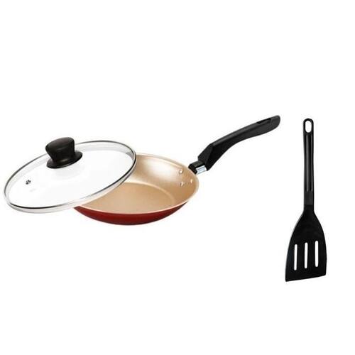 Frigideira de ovo antiaderente teflon pequena com tampa de vidro 16 cm cor cereja e bege