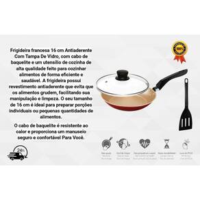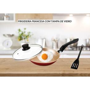 Frigideira de ovo antiaderente teflon pequena com tampa de vidro 16 cm cor cereja e bege