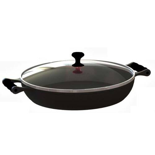 Frigideira Paella com alças de silicone Preto e tampa de vidro 5,6 Litros 36 Cm